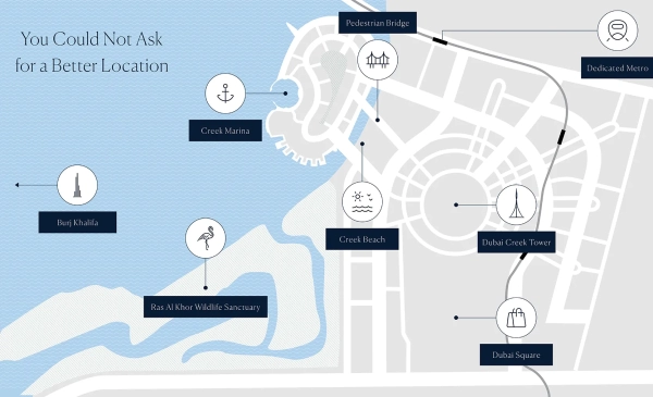 In the spotless Dubai Creek Harbour, Cedar at Creek Beach provides rapid connectivity and convenient commutes.